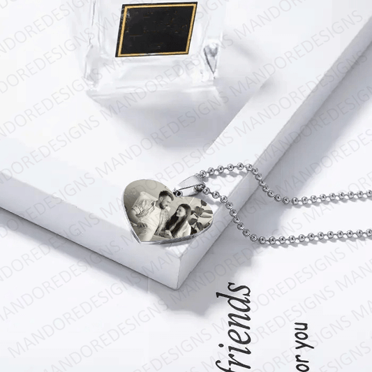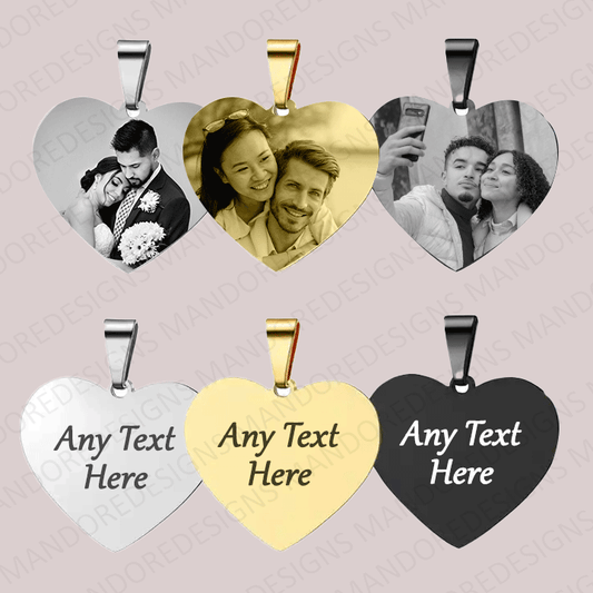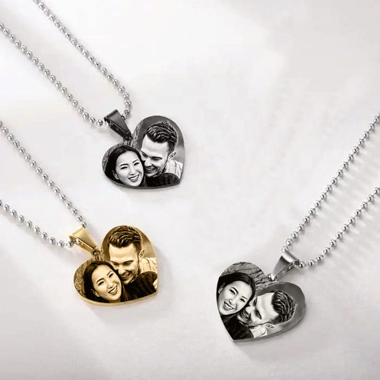 Personalised Heart Necklace Pendant with Engraved Photo and Text