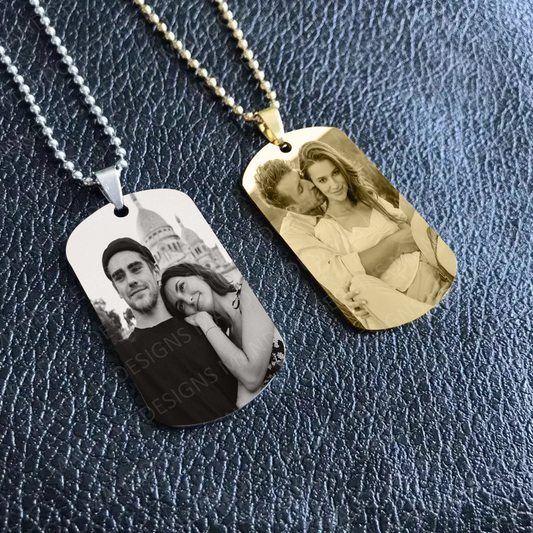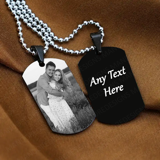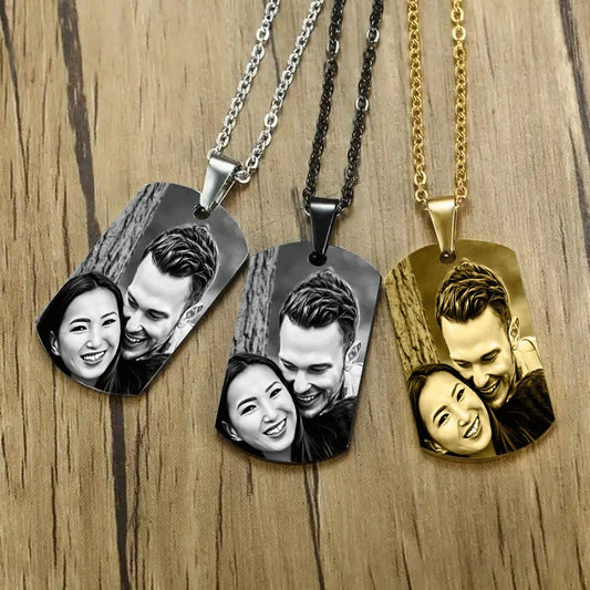 Personalised Necklace Square Military Style Pendant Dog Tag with Engraved Photo and Text