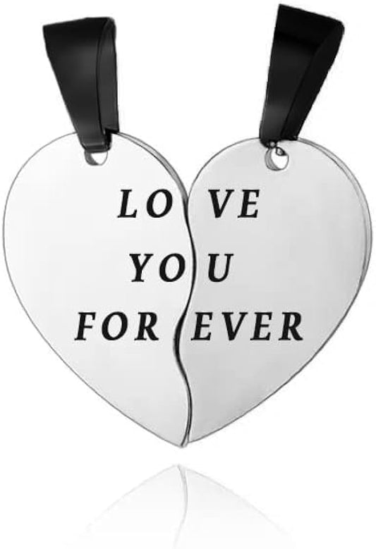 Personalised Split Heart Text Engraved Name Couple Necklace Two Pieces Gift