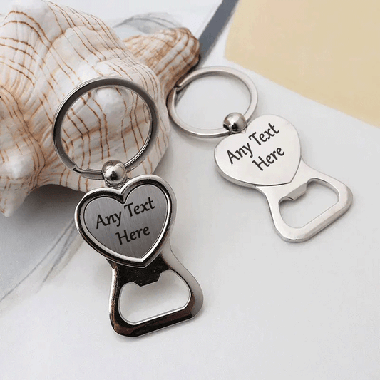 Personalised Engraved Heart Keychain Keyring Silver Bottle Opener Gift Set (Both Sides Engraved)