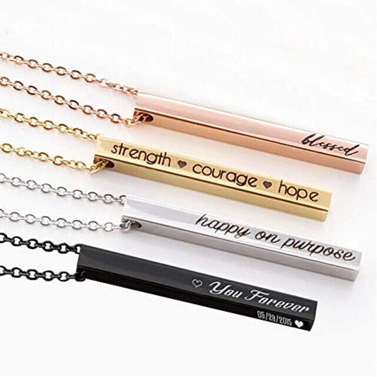 Personalised Engraved Name Vertical Bar Necklace Pendant Customised Gift for Women