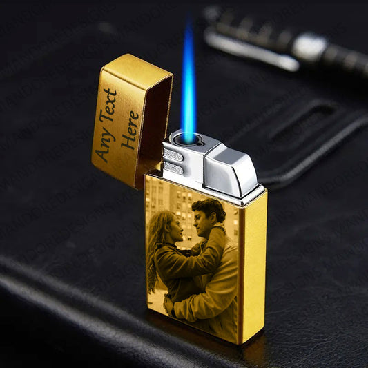 Luxury Golden Personalised Photo & Name Engraved Lighter Gift Set