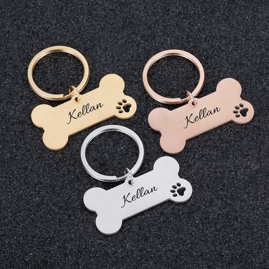 Stainless Steel Pet ID Dog Tag Name Dog Bone With Paw Print