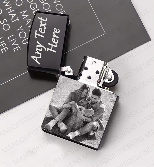 Personalised Photo & Name Engraved Flame Lighter Gift Set