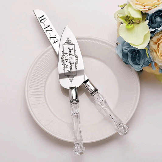 Wedding Cake Server and Slicer Knife Gift Set Personalised for Bride & Groom made of Stainless Steel