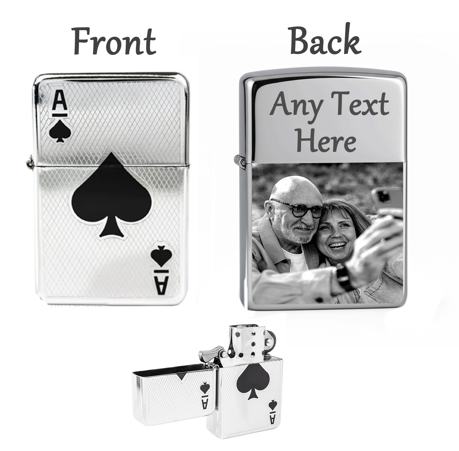 Ace of Heart & Ace of Spade Personalized Photo & Text Engraved Lighter Gift Set – Custom Silver Lighter, perfect for Christmas, Valentine’s Day & special occasions.